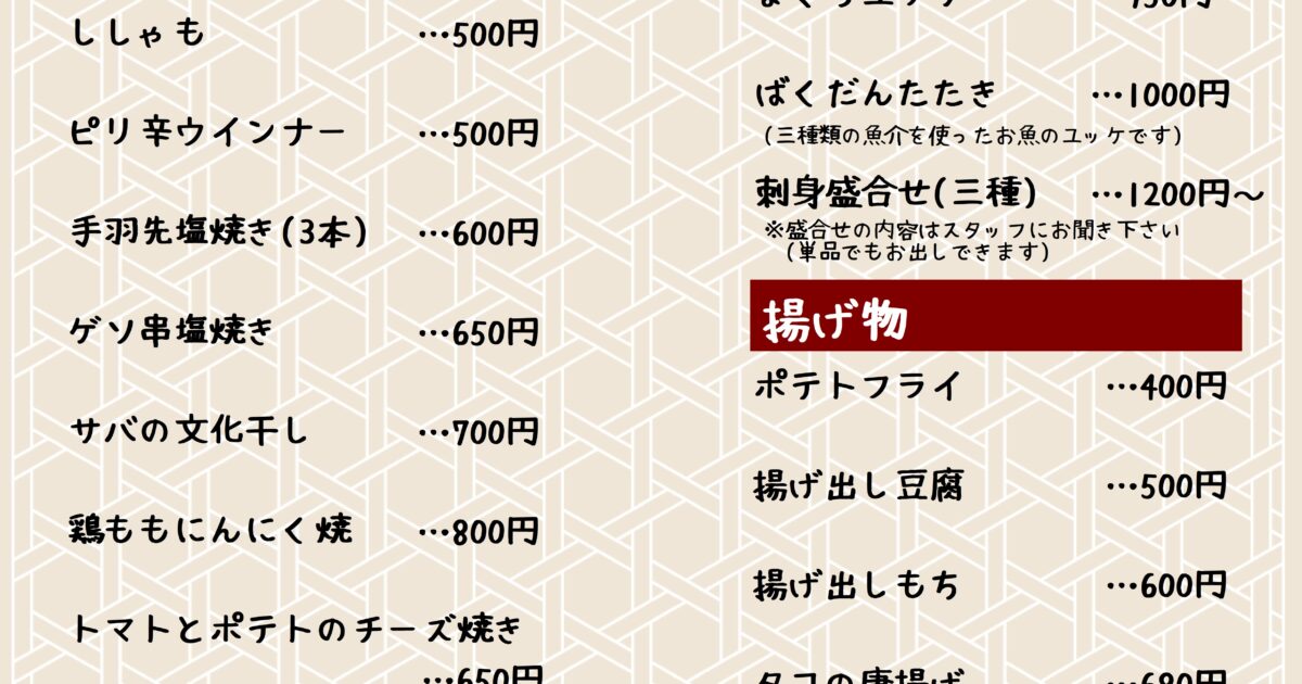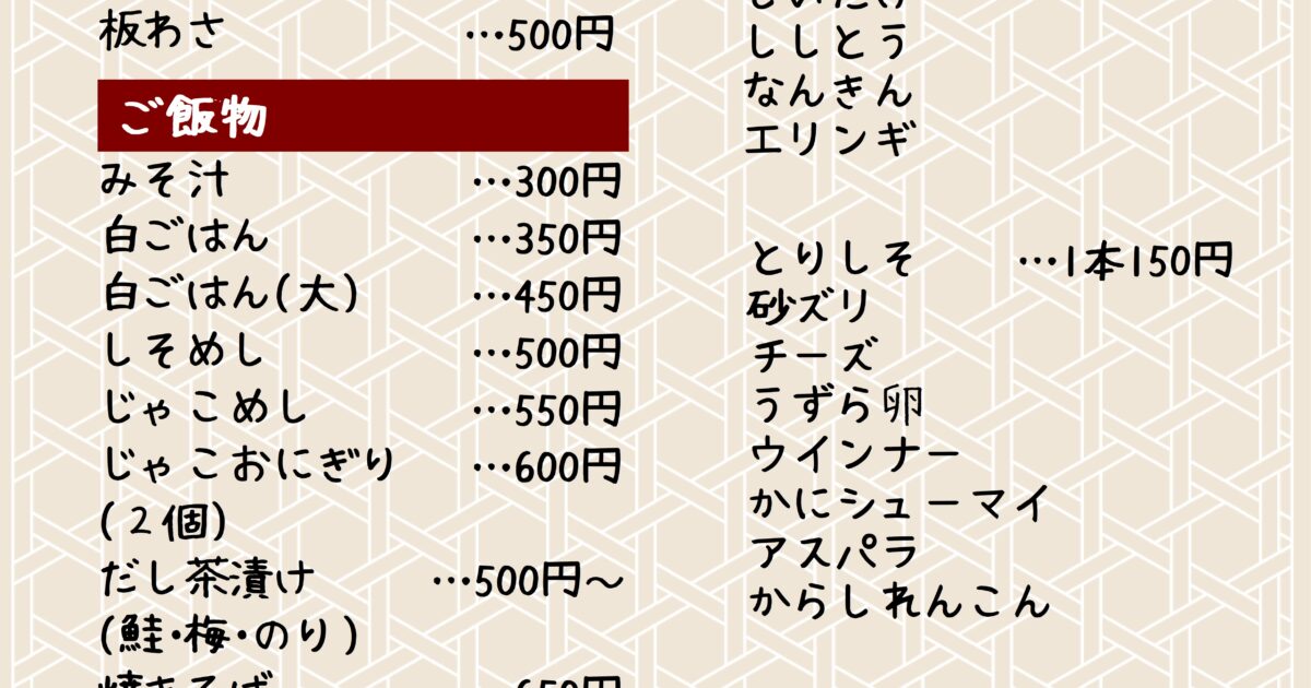 お品書き