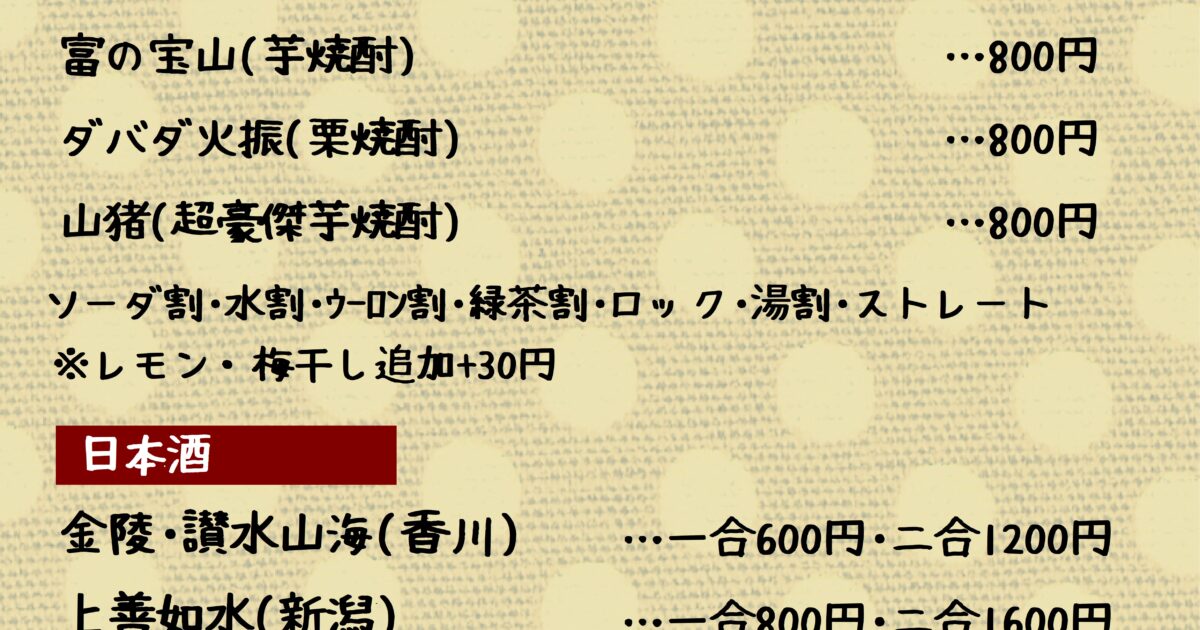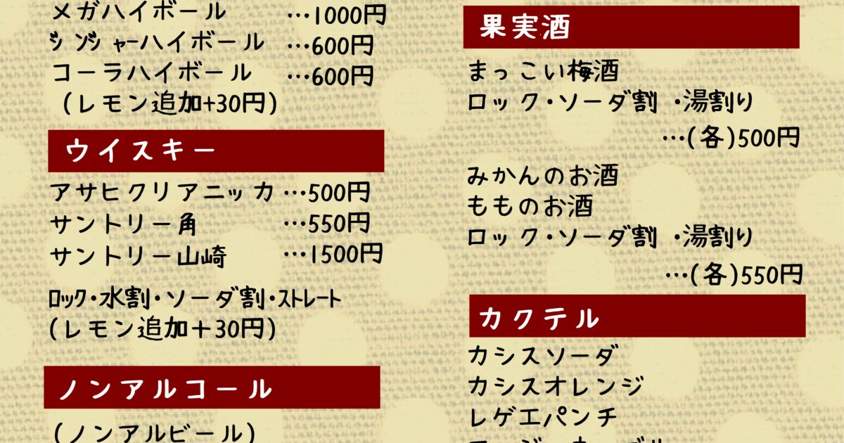 ドリンクメニュー